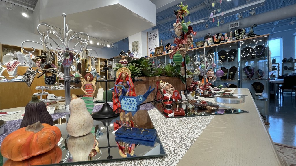 It’s time to start thinking about gift shopping for the holidays. Do you want something unique for everyone on your list? Unique, unusual, eye-catching, and special gifts can be found at Creative Journey Studios. You won’t find the gift you gave your sister last year or the one Grandpa got regifted for the last five years…instead find something that one of our 77 artists from around the world has made, that just may be the perfect gift! So come in and shop with us and we’ll be happy to give you suggestions or just stand back and watch you have fun making your own choices.