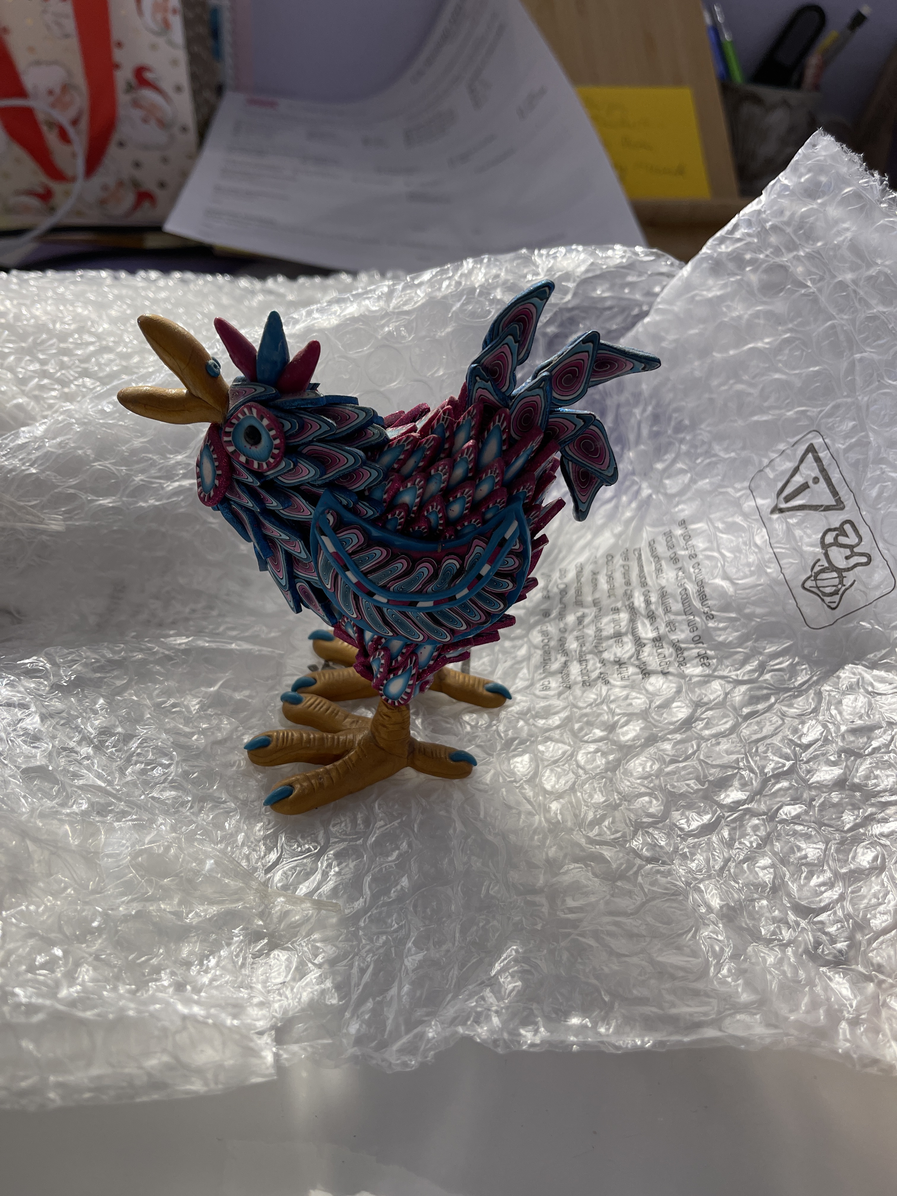 Then came the other surprise…..she sent the first project she ever made — a chicken, that is just delightful.